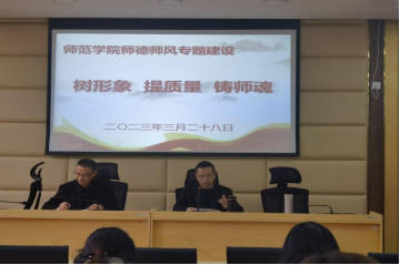 龙治勇组织学习了广职委发〔2023〕3号《广安职业技术学院干部职工“十不准”》,结合学校的第二届党代会会议精神,要求全体教师提升核心素养及良好师德形象,真正做到“学高为师,身正为范”,树立良好的学院形象;在“双高”和“创本”的道路上,不断提高主人翁意识,做到人人有任务,个个有责任;强化自身能力素养,提高教学科研质量,提升管理水平,形成良好的班风、教风和学风,铸强我院双师师魂。最后,他希望全体教师坚守师德底线,做好教书育人工作,增强自身的责任感和使命感,争做有理想信念、有道德情操、有扎实学识、有仁爱之心的“四有”教师,更好担当起学生健康成长的指导者和引路人。