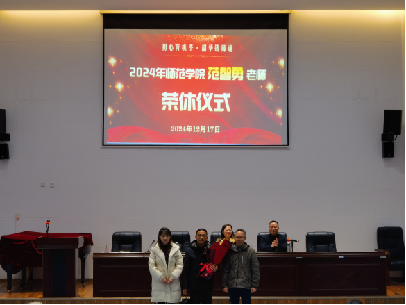 初心育桃李,韶华铸师魂。会议最后为范智勇老师举行了温馨的荣休仪式。范老师用认真严谨的态度、无私奉献的精神为校院发展贡献了自己的青春和智慧,彰显了高尚的师德风范和育人情怀。kaiyun中国官方网站荣休活动让尊师重教文化持续弘扬,激励更多青年教师成为“经师”和“人师”相统一的“大先生”。