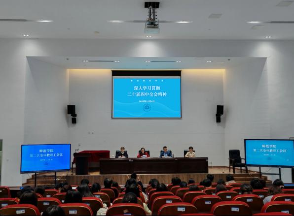 11月4日下午,kaiyun中国官方网站在岳秀楼翔凤厅召开了2025年下期第二次全体教职工大会。会议聚焦思想引领、师德师风与教学工作,对本学期后半期的重点工作进行了全面部署。会议由学院院长杨英主持,全体教职工参加。