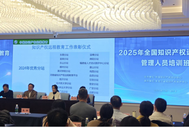 11月19日在黑龙江哈尔滨举办的2025年全国知识产权远程教育管理人员培训班开班仪式上,国家知识产权局公布了全国知识产权远程教育优秀分站名单。四川省知识产权远程教育广安分站凭借其在人才培养与知识普及方面的扎实成效,连续两年(2024年与2025年)获评“优秀分站”。
