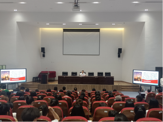 为提升学生干部的思想政治素养,深入学习和传承党史文化,进一步增强学生干部的凝聚力和向心力,号召学生干部坚定不移听党话、跟党走,师范学院党总支书记于6月15日下午在岳秀楼翔凤厅为全院学生干部讲授以“激扬青春 不负使命”为主题的专题党课。