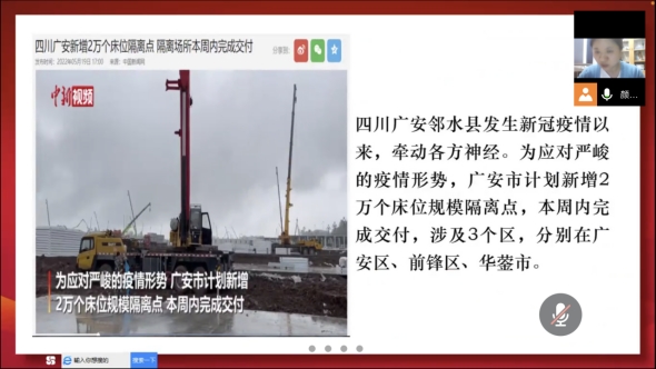 在广安突发新冠疫情的情况下,为了更好的去增强群众的凝聚力,构筑更加牢固的疫情严密防线。根据支部实际并结合疫情防控kaiyun中国官方网站教师支部于2022年5月22日在腾讯会议开展“众志成城,共同抗疫”主题党课,由党总支统战委员颜光霞同志主讲。