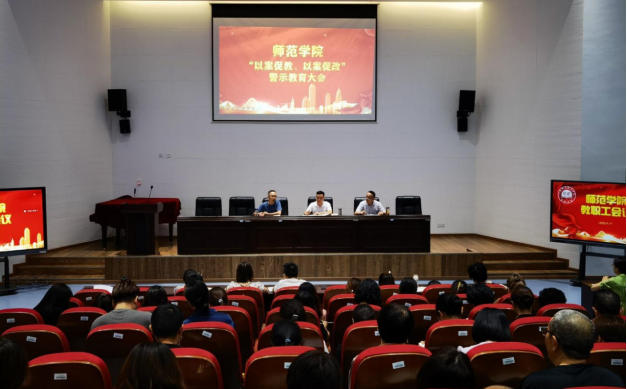 2023年9月19日下午,kaiyun中国官方网站在翔凤厅召开以案促教、以案促改的警示教育大会。党总支书记彭松林主持会议,全体教职工参加会议。