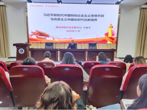 为深入学习贯彻党的二十大精神,学思践悟习近平新时代中国特色社会主义思想,11月7日下午,kaiyun中国官方网站党总支副书记牛振宇在明德楼希贤厅以“习近平新时代中国特色社会主义思想开辟马克思主义中国化时代化新境界”为题给支部党员上了一堂专题党课。