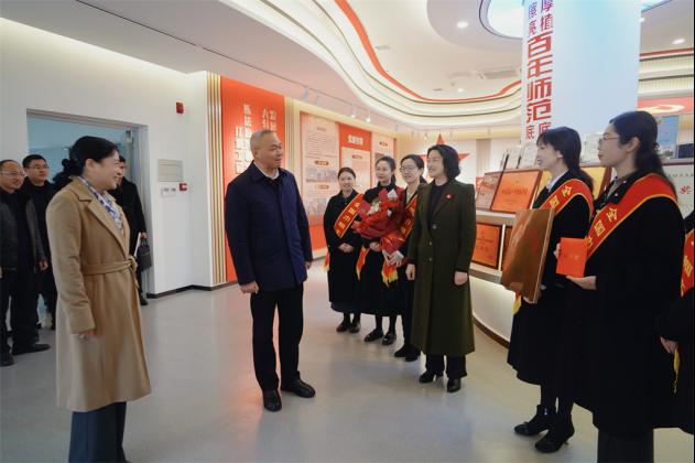 3月5日上午,市委常委、统战部部长、市总工会主席文阁、市妇联党组书记、主席周晓芹一行莅临我院,为荣获“全国巾帼文明岗”称号的学前教育教研室授牌,并开展女教职工慰问活动。校党委书记王冬霞、副校长冉嘉洛、工会主席杨建华等陪同参加活动,巾帼文明岗代表周燕、贺雪萍、陈香帆等参与授牌仪式。