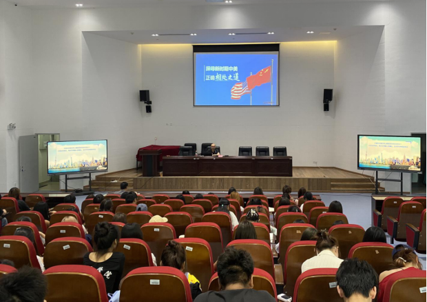 讲座中,冉嘉洛以历史经纬为轴,通过详实的数据和案例,系统梳理了中美历史关系的发展,深入剖析了中美关系的复杂性和影响力,面对当前美国政府的恶劣行为造成的严重影响,详实的阐明了我国维护主权与发展利益的坚定立场和战略智慧。指出作为新时代的大学生,既要心怀家国,也要有全球视野,要勇担使命,以拼搏奋斗书写“强国有我”的青春答卷。