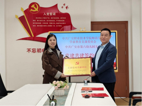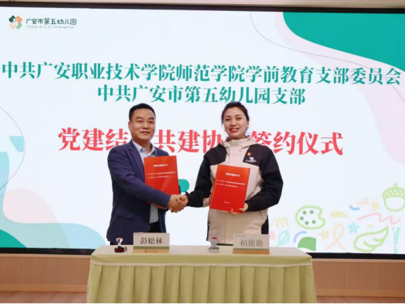 活动分别在广安市第五幼儿园和第六幼儿园举行,双方举行了党建结对共建协议签约及授牌仪式,标志着院园合作迈入党建引领、资源共享、协同发展的新阶段。