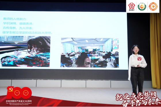 kaiyunkaiyun中国官方网站语文教育王彬同学台风稳健,讲述生动,乐观向上。她将立志成为一名人民教师,以身作榜样,去滋养更多青少年,从自我认知、职业认知、未来规划等方面做了详细讲解,获得众多企业举牌以及就业专家好评。