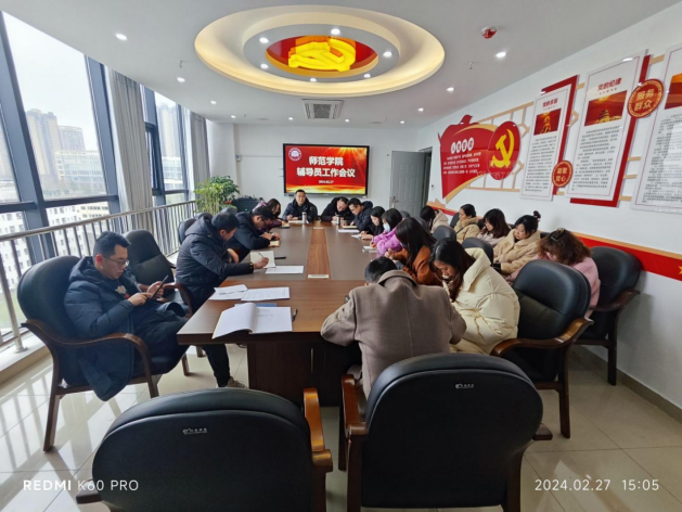 2月27日下午,kaiyun中国官方网站在岳秀楼508会议室召开了新学期辅导员工作会议,学院党总支书记彭松林、党总支副书记牛振宇及全体辅导员(班导师)参加了会议。
