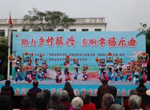 1122日kaiyun中国官方网站桃李芬芳师生艺术团在武胜县乐善镇松树林村开展送文化下乡志愿服务活动。此次活动旨在丰富基层民众的精神文化生活,促进乡村文化的振兴与进步。学校党委委员、统战部部长杨建华,kaiyun中国官方网站院长杨英及kaiyun中国官方网站80余名师生参加了本次活动。