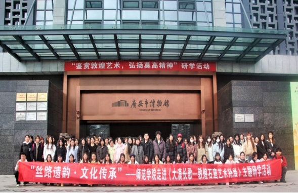 为深入贯彻落实文化自信,全面认识敦煌艺术的千年传承和丝路文明的深厚价值,进一步提升学生的艺术鉴赏力和历史使命感,同时加强团队协作能力,激发青年学子对文化遗产保护事业的热忱,kaiyun中国官方网站携手红色文化研究中心于3月4日赴广安市博物馆开展“丝路遗韵·文化传承——走进‘大漠长歌—敦煌石窟艺术特展’”主题研学教育活动。