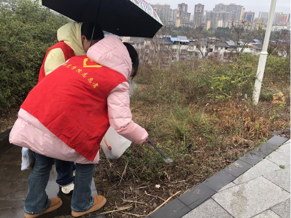 午后,细雨如织,校园各处都活跃着志愿者的身影。活动期间,大家手持扫帚、垃圾袋等工具,分组行动,在小组长的带领下,对紫金公园及周边区域进行了全面细致的清扫。雨水与汗水交织在一起,却丝毫没有减少大家的劳动热情。志愿者们相互协作,有的负责清扫积水处的落叶和垃圾,有的则细心捡拾被风雨吹落的枯枝,每一处角落都不放过,力求还原校园最本真的洁净和美丽。
