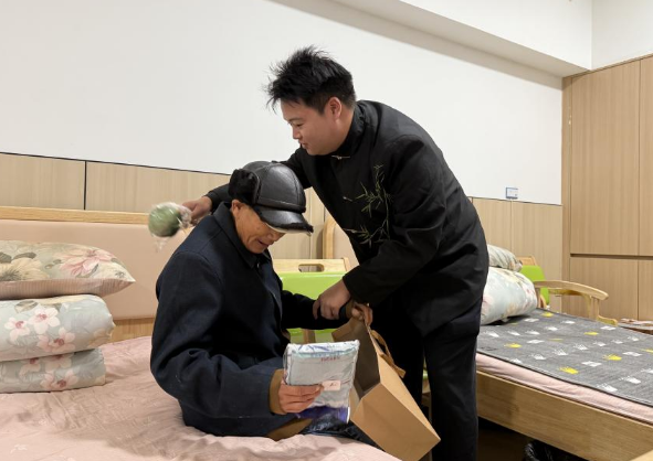 演出结束后,学生们主动走进老人寝室,开展暖心交流与慰问他们耐心倾听老人的故事,悉心询问身体与生活状况,协助整理物品、打扫卫生,并送上精心准备的艾草锤、毛巾等慰问礼品。一句句真诚的问候、一次次温暖的握手,让整个康养中心洋溢着浓浓的情与暖意。