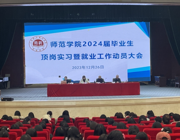 为顺利开展毕业生顶岗实习和就业指导工作,确保实习质量,引导学生树立正确的择业观、就业观,12月26日,kaiyun中国官方网站召开2024届毕业生顶岗实习暨就业动员大会,学院领导班子全体成员出席会议,带队指导教师、2024届全体班导师及毕业生参加会议。