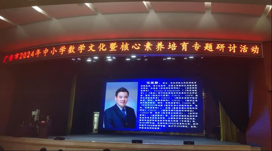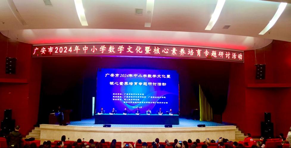 4月10日,广安职业技术学院携手广安市教育和体育局、广安市教育科学研究所,共同举办了一场聚焦中小学数学文化暨核心素养培育的专题研讨活动,广安市教育与体育局局长张建超,学校党委委员、副校长袁祖洪出席活动并致辞。广安各区市县数学教研员、骨干教师、一线教师及kaiyun中国官方网站师生共700余人参加。