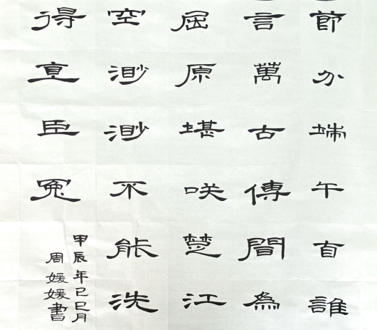 决赛采取现场书写、立即评分的方式进行。硬笔组选手们在方格纸中一笔一画精心勾勒文字的线条,刚中带柔,似千磨万击还坚韧的青竹,既具有独特的艺术效果,又不失中国人的风骨。毛笔组的选手们提笔自信泰然,行云流水般在洁白的纸张与黑色的墨汁间写下“千磨万击还坚劲,任尔东西南北风”,尽显中华优秀传统文化之韵味。粉笔组选手全神贯注,任凭粉笔在指尖轻舞,尽显学子风华与底蕴。