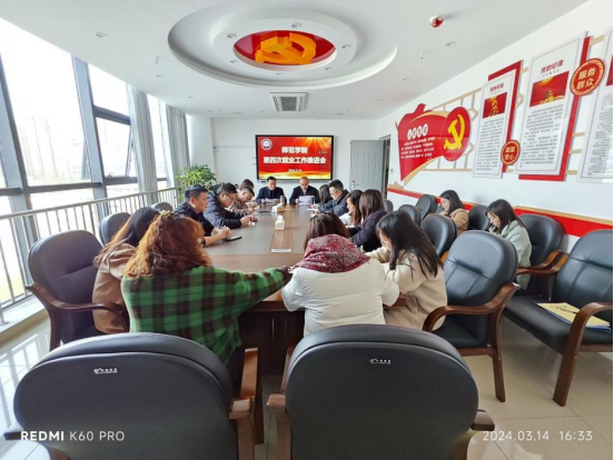 会上,冉嘉洛传达了学校第三次就业工作会议精神,通报了2024届毕业生就业去向及落实率情况,结合学院实际提出了工作要求:一是要切实提高政治站位,充分认识做好毕业生就业工作的重要意义。二是抓住3月—7月的就业黄金期,关键期,确保就业工作目标任务的实现。三是多措并举,切实做好就业服务和指导工作。指出要以情感关爱促就业,时常关心关爱毕业生,帮助其解决求职过程中“急难愁盼”问题;要做好政策宣传促就业,加强对就业政策的宣传,帮助毕业生打破就业信息壁垒;要做好实习指导促就业,将实习与就业结合起来,指导学生增强专业实践技能,提升就业能力。