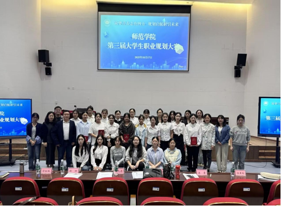 本次大赛设成长、就业两大赛道,经前期严格初选,19名优秀学生晋级决赛。比赛现场气氛热烈,选手们通过PPT和视频展示,从自我认知、职业锚定、阶段行动成果与动态调整等方面阐述规划,他们目标清晰、表达流畅,充分展现师范学子的竞赛风采与逐梦决心。 历经2个小时的激烈角逐与评委组的专业评审,最终12名选手斩获佳绩。其中,23小学语文教育4班杨钰灵获就业赛道一等奖,24小学教育2班吴诗羽获成长赛道一等奖。此外,23早期教育1班高姝越等4名同学获二等奖,23学前教育2班唐芯垚等6名同学获三等奖。