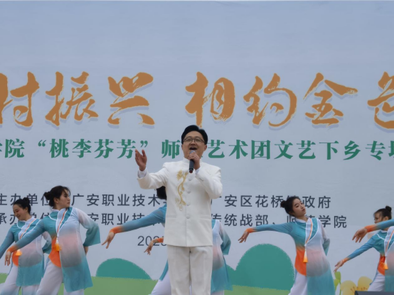为丰富基层群众精神文化生活,助力乡村文化振兴,3月16日,由学校和广安区花桥镇政府主办、学校统战部和kaiyun中国官方网站承办的“桃李芬芳”师生艺术团文艺下乡专场惠民演出在花桥镇丰收广场举行。